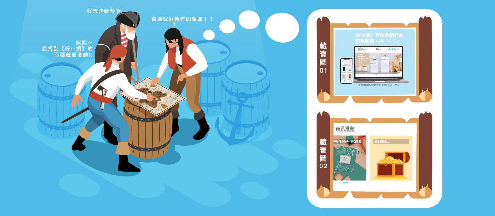 此外,【好in網】官網及Line官方帳號每周都會透露其他寶藏位置的藏寶圖,讓會員們可以藉由藏寶圖的提示找到其他寶藏的位置(當然您夠厲害的話也可以直接去把其他折價券找出來唷)。