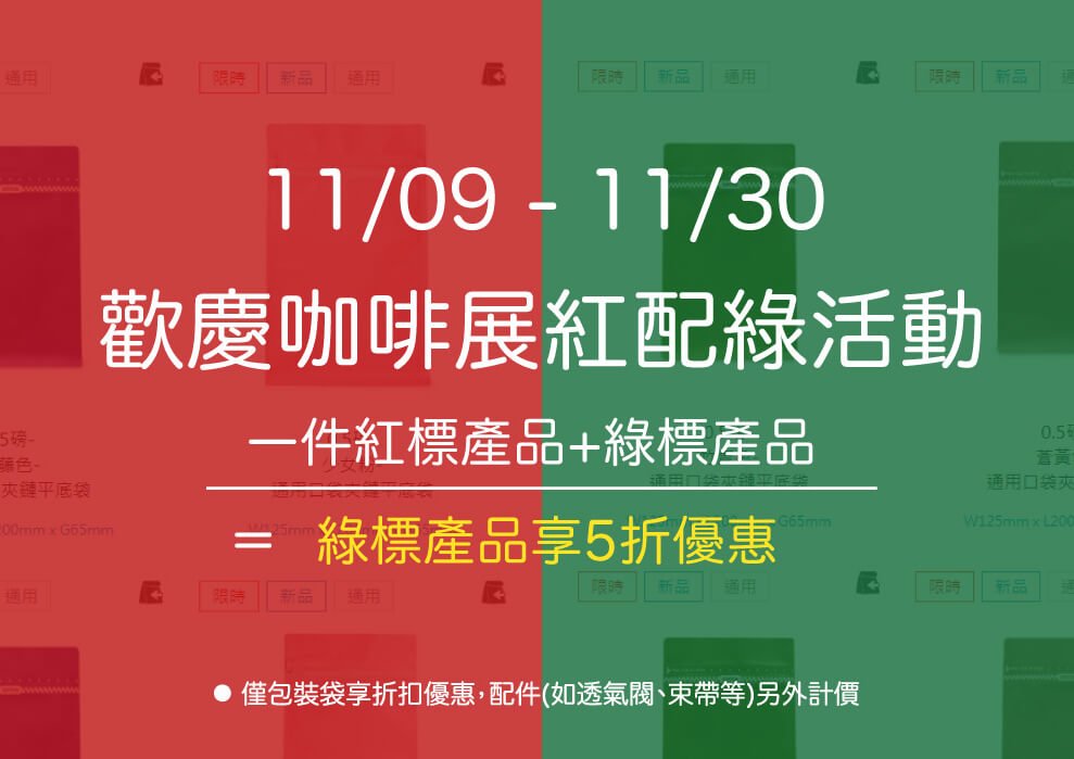 在過去我們會於台灣國際咖啡展的展覽期間舉辦公版袋的限時促銷來回饋會員;但2020年因疫情未見好轉,我們決定不參加2020台灣國際咖啡展時,但與此同時我們也馬上討論線上A +B (紅配綠)產品優惠活動的可行性,為了就是讓【品牌包裝職人-好in網】的會員絕不因為我們未參展而失去享受咖啡展的行銷活動,所以【品牌包裝職人–好in網】的客服與資訊工程師又開始規劃、設計與不斷測試這線上優惠功能,當然最後證明這又是個會員喜愛的線上活動;而未來A +B (紅配綠)活動也會不定時的推出,讓未來想要藉此機會來【品牌包裝職人-好in網】嘗鮮或挖寶的會員們有個快速直達的方便門可選購,而我們一定會事先預告,絕不會讓各位措手不及。