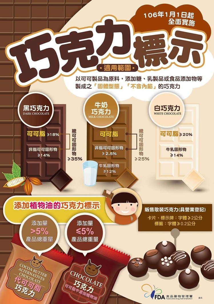 包裝的功能之一就是內容物的訊息完整揭漏。除了食安外,個人的健康管理也是仰賴包裝上的訊息。巧克力的的含量從明年開始要清楚標示。但如何標示又考驗到包裝設計的創意。