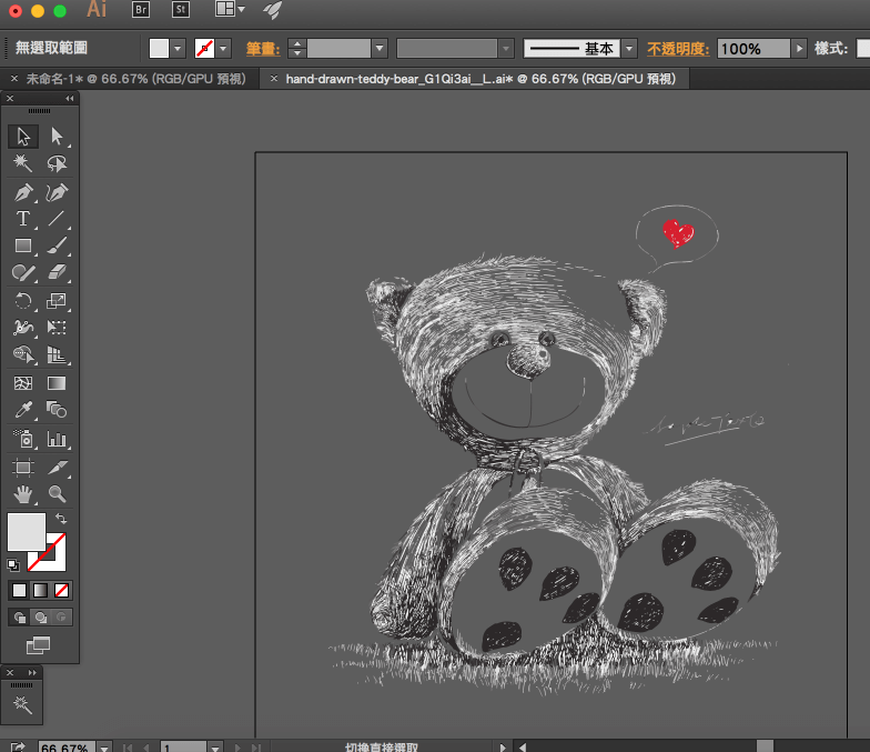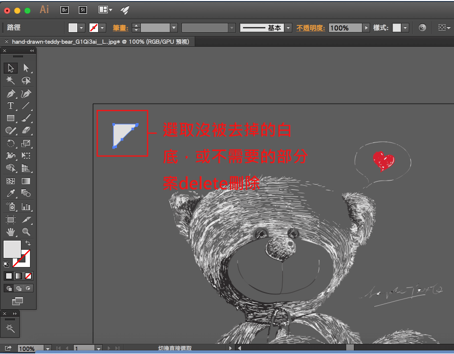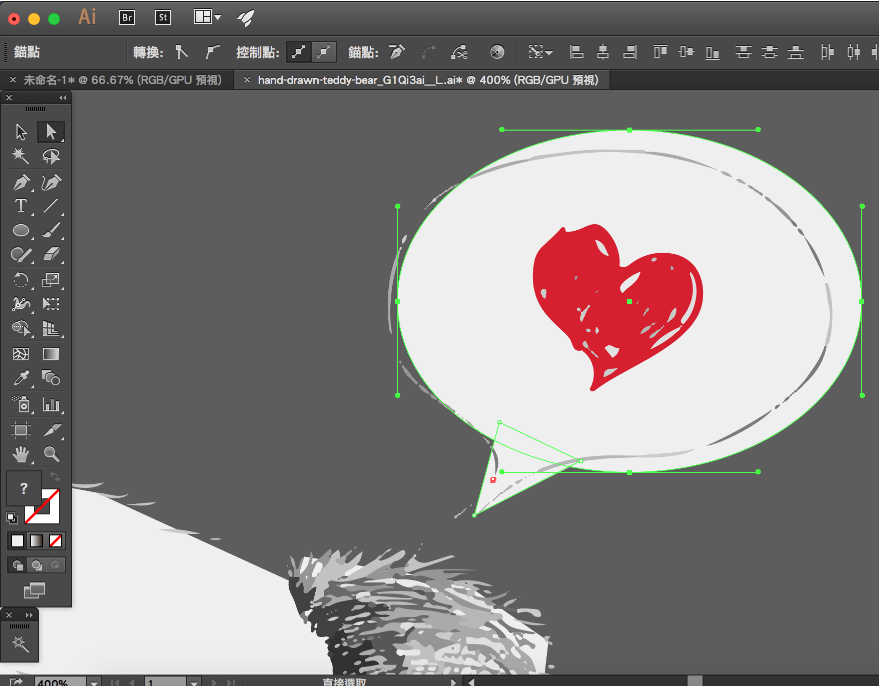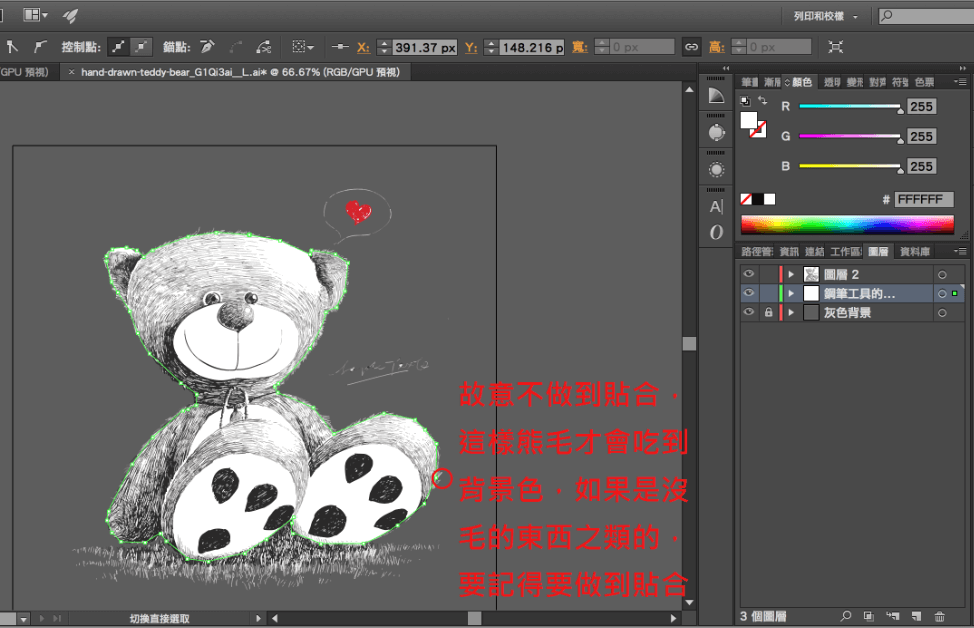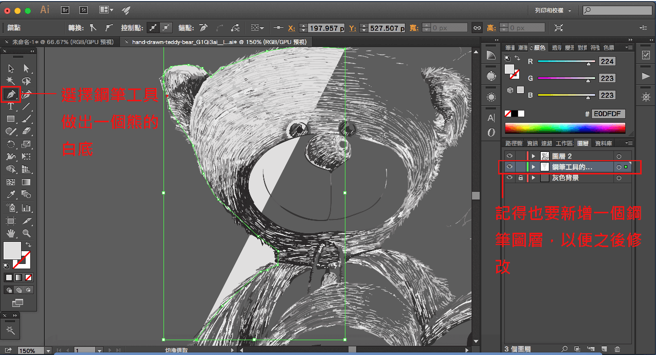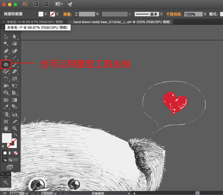 步驟六、新增一個圖層,用鋼筆工具or圖型工具做一個熊的圖案,將不小心去掉的白色部分重現出來。