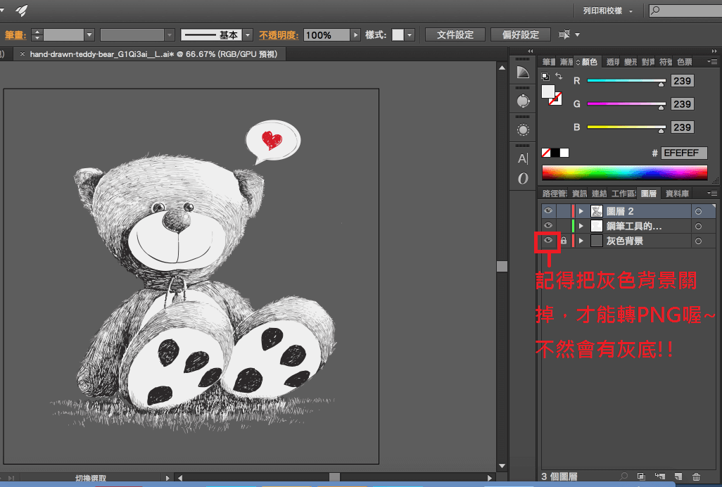 步驟二、將圖片放入Illustrator,並製作一個灰色圖層 ( 方便我們看有沒有去背成功 )