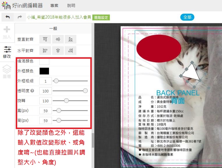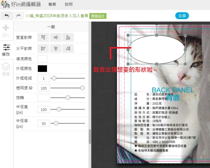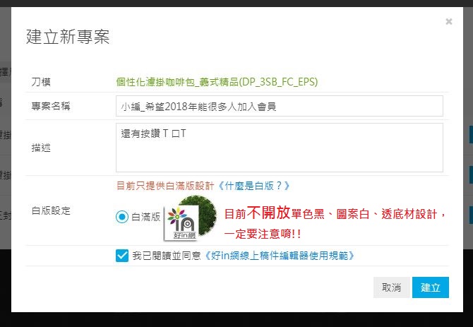 當然【好in網】編輯器還有更多好用的功能跟圖片,想要一探究竟的粉絲們趕快加入會員去玩玩看吧~而且搭配這次個性化咖啡包活動訂單金額只要滿 2000元還送一張200元折價券,提供您下次回購時可以享有優惠唷!!
