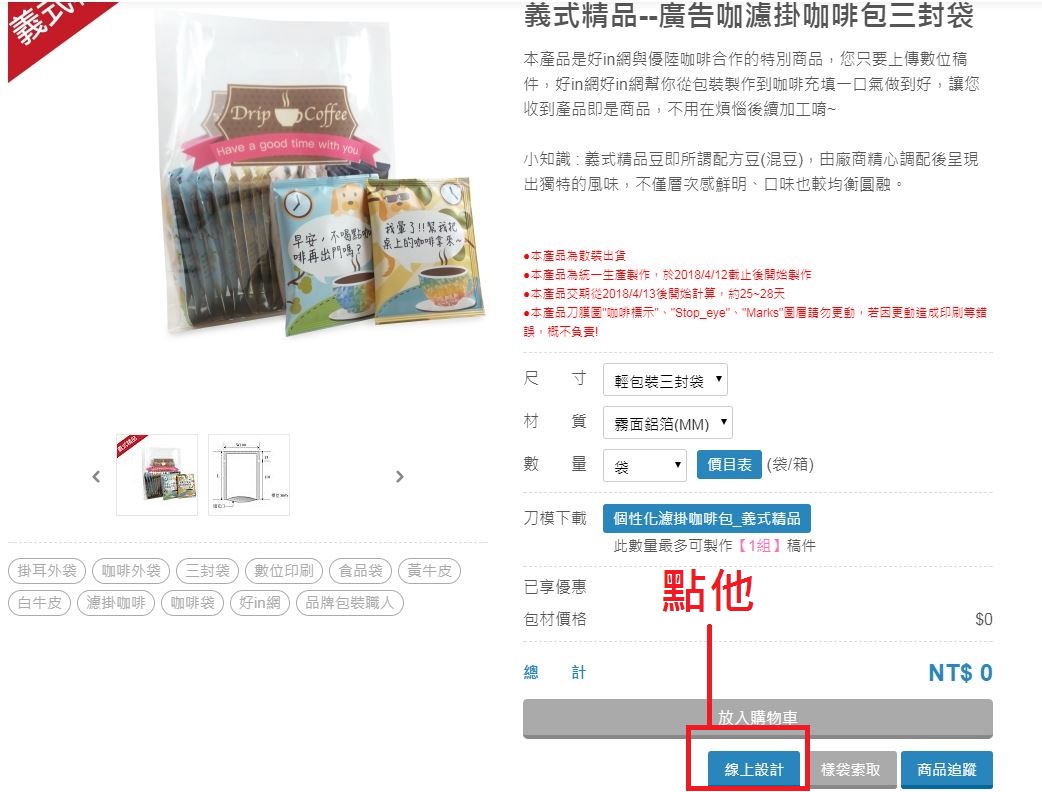 第二步、按好in網官網右上角的"線上設計",或是點擊產品內容裡的線上設計