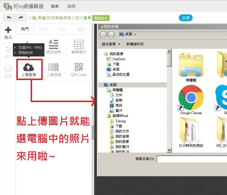第五步、點上傳圖檔,匯入小編自己的照片,並看看DPI夠不夠!!
