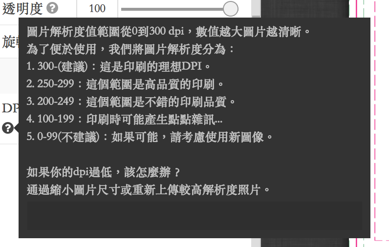 (p.s.好in網的DPI自動檢測器,可提供您確認解析度是否足夠,但若本身照片解析度高但拍攝不清楚,印出來還是會不清楚,所以上傳圖片時除解析度之外也要注意照片品質!!)