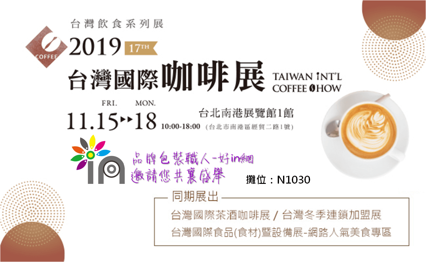 【品牌包裝職人-好in網】 參加 2019台灣國際咖啡展 邀請您索票共襄盛舉