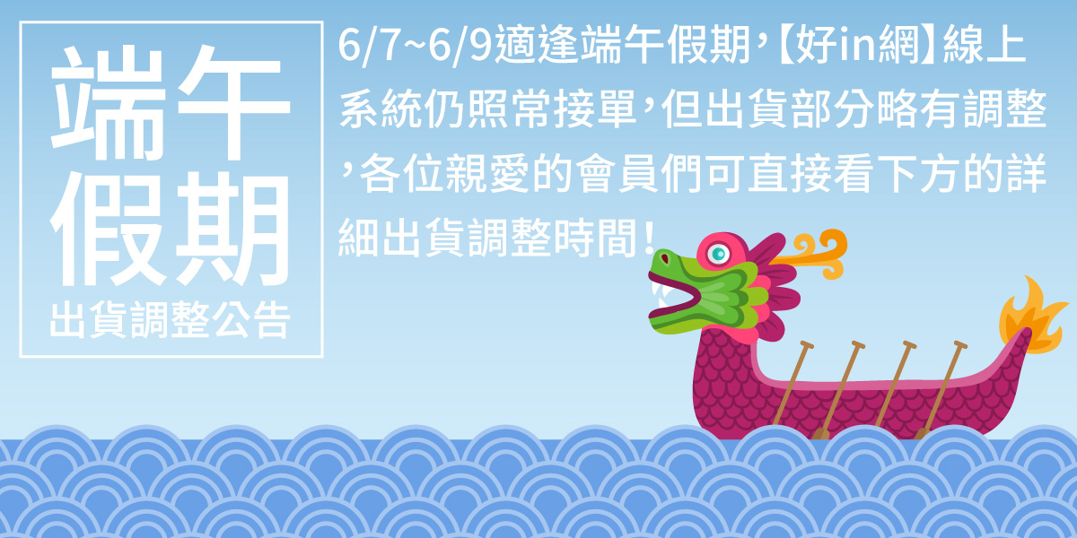 6/7~6/9適逢端午假期,線上系統照常接單,但出貨略有調整。